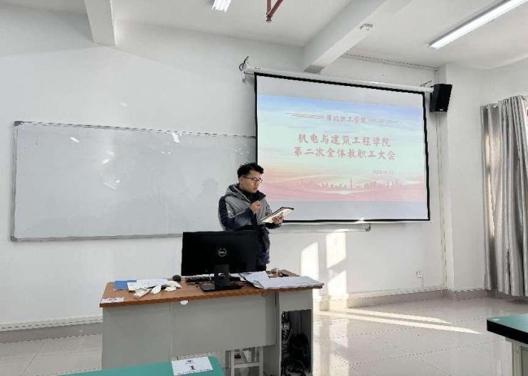 会议开始,院长张安宁宣布学院内部机构确立与人员调整:一是成立机建学院党总支、团总支、党支部,任命相关负责人;二是院长助理和各教研室主任的任命;三是欢迎新进人员的加入。