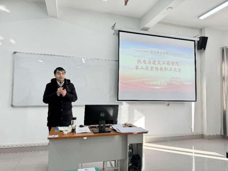 2024年1月22日下午,suncitygroup太阳成集团在行政楼303室召开第二次全体教职工大会,全体教职工参加本次会议,会议由suncitygroup太阳成集团党总支书记、院长张安宁主持。